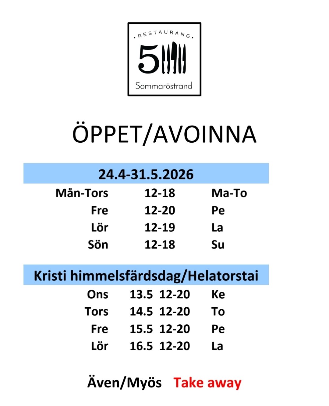 Tarkista ajantasaiset aukioloajat